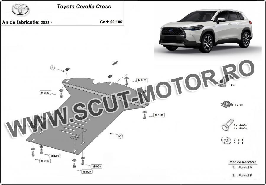 Scutul este noua si se potriveste perfect pentru toate tipurile de motorizare Toyota Corolla Cross fabricat între ani 2022 - 2026. Scutul protejeazã: Catalizator.