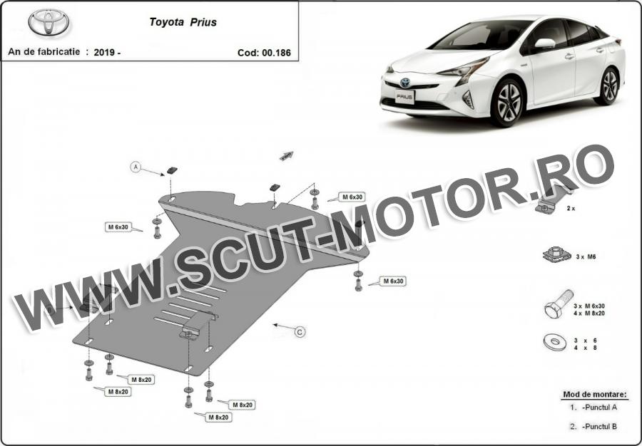 Scutul este noua si se potriveste perfect pentru toate tipurile de motorizare Toyota Prius 4 fabricat între ani 2019 - 2025. Scutul protejeazã: Catalizator.