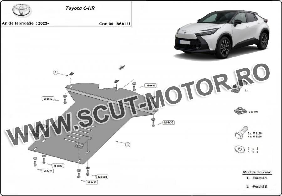 Scutul este noua si se potriveste perfect pentru toate tipurile de motorizare Toyota C-HR fabricat între ani 2023 - 2025.