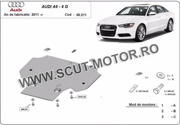 Scutul este noua si se potriveste perfect pentru toate tipurile de motorizare Audi A6 fabricat între ani 2011 - 2018. Scutul protejeazã: cutie de viteză.