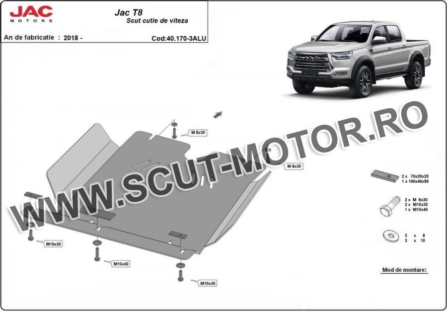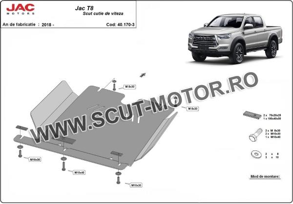 Scutul este noua si se potriveste perfect pentru toate tipurile de motorizare Jac T8 fabricat între ani 2018 - 2025. Scutul protejeazã: cutie de viteză.