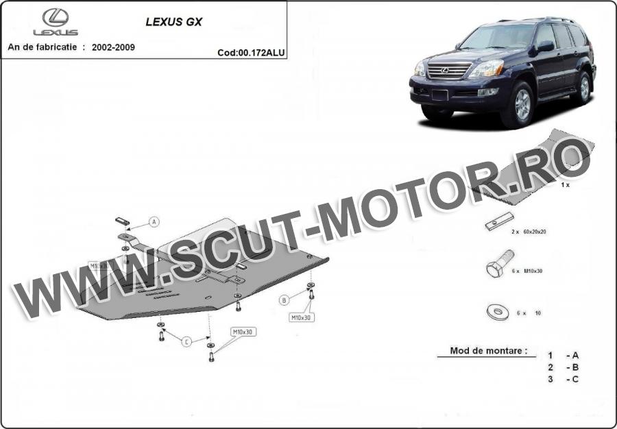 Scutul este noua si se potriveste perfect pentru toate tipurile de motorizare Lexus GX fabricat între ani 2002 - 2009.