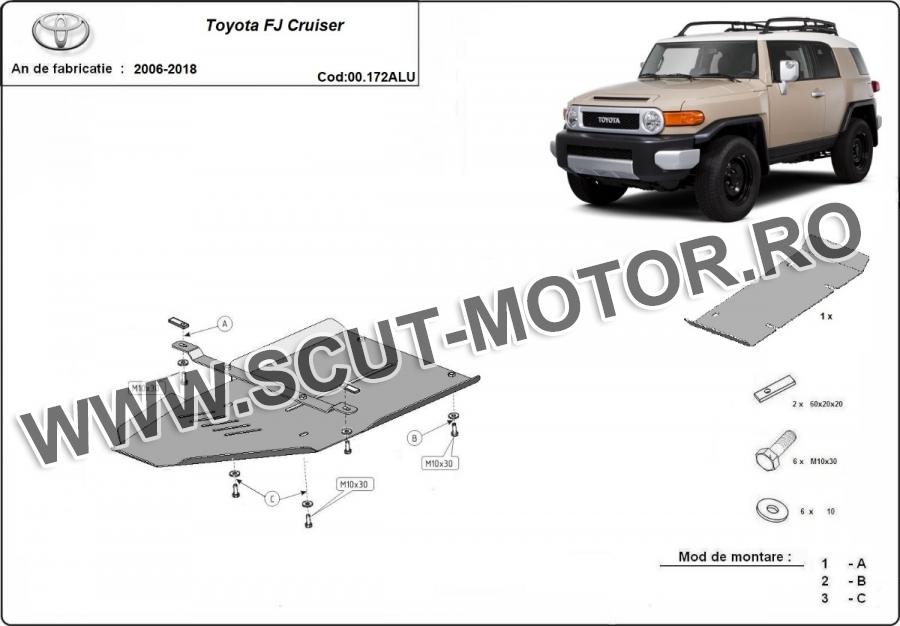 Scutul este noua si se potriveste perfect pentru toate tipurile de motorizare Toyota Fj Cruiser fabricat între ani 2006 - 2018. Scutul protejeazã: cutie de viteză.