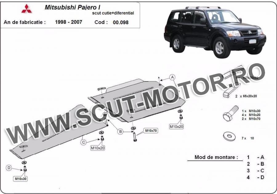 Scutul este noua si se potriveste perfect pentru tipurile de motorizare - Mitsubishi Pajero Sport 1 fabricat între ani 1998 - 2007. Scutul protejeazã: cutie de viteză, diferențial.