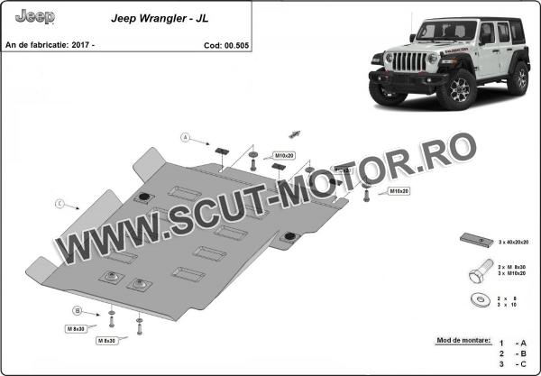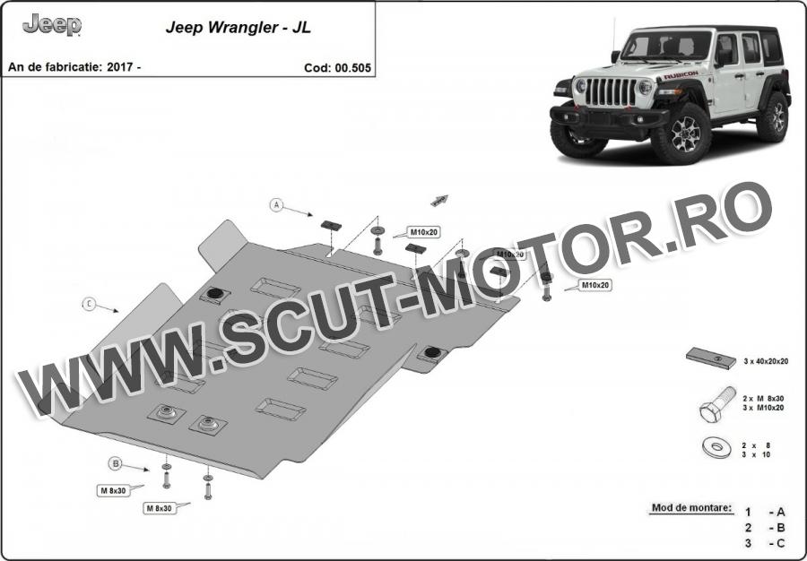 Scutul este noua si se potriveste perfect pentru toate tipurile de motorizare Jeep Wrangler fabricat între ani 2017 - 2025. Scutul protejeazã: cutie de viteză.