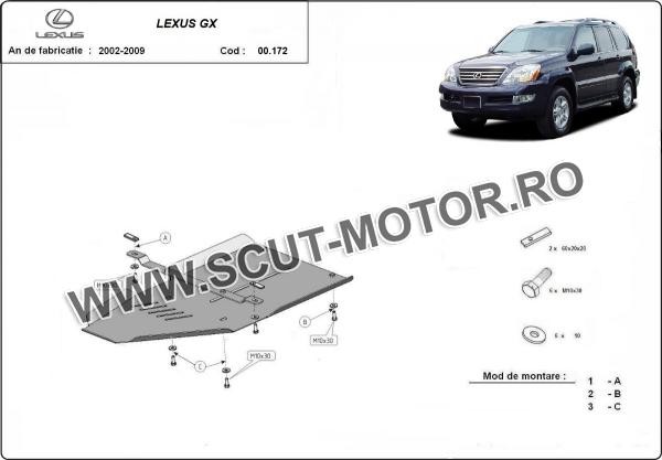 Scutul este noua si se potriveste perfect pentru toate tipurile de motorizare Lexus GX fabricat între ani 2002 - 2009.
