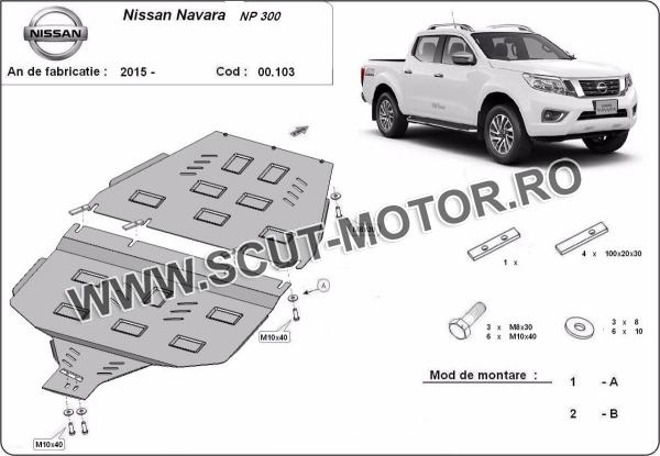Scutul este noua si se potriveste perfect pentru toate tipurile de motorizare Nissan Navara NP300 fabricat între ani 2015 - 2021. Scutul protejeazã: cutie de viteză.