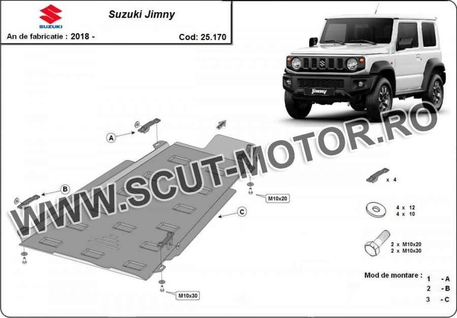 Scutul este noua si se potriveste perfect pentru toate tipurile de motorizare Suzuki Jimny fabricat între ani 2018 - 2025.