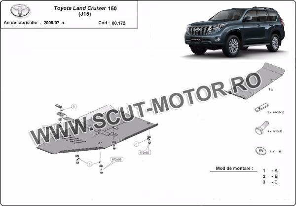 Scutul este noua si se potriveste perfect pentru toate tipurile de motorizare Toyota Land Cruiser fabricat între ani 2009 - 2025. Scutul protejeazã: cutie de viteză.