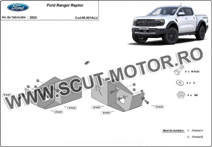 Scutul este noua si se potriveste perfect pentru toate tipurile de motorizare Ford Ranger Raptor fabricat între ani 2023 - 2026. Scutul protejeazã: Senzor braț oscilant.
