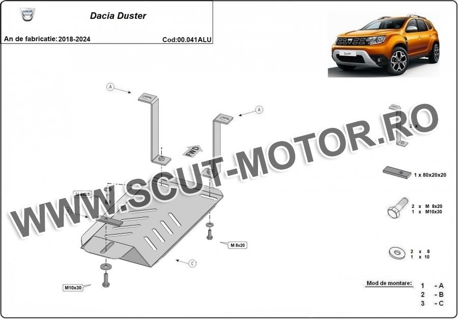 Scutul este noua si se potriveste perfect pentru tipurile de motorizare 4x4 - Dacia Duster fabricat între ani 2018 - 2024. Scutul protejeazã: diferențial.