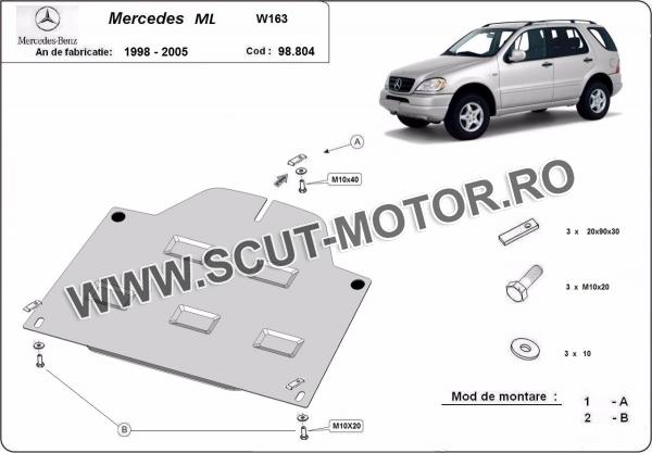 Scutul este noua si se potriveste perfect pentru toate tipurile de motorizare Mercedes ML W163 fabricat între ani 1998 - 2005. Scutul protejeazã: diferențial spate.