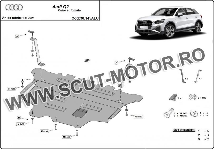 Scutul este noua si se potriveste perfect pentru toate tipurile de motorizare Audi Q2 fabricat între ani 2021 - 2026.