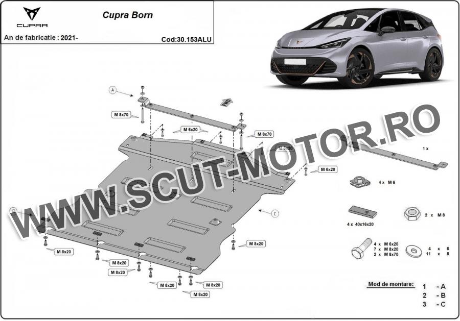 Scutul este noua si se potriveste perfect pentru toate tipurile de motorizare Cupra Born fabricat între ani 2021 - 2025.