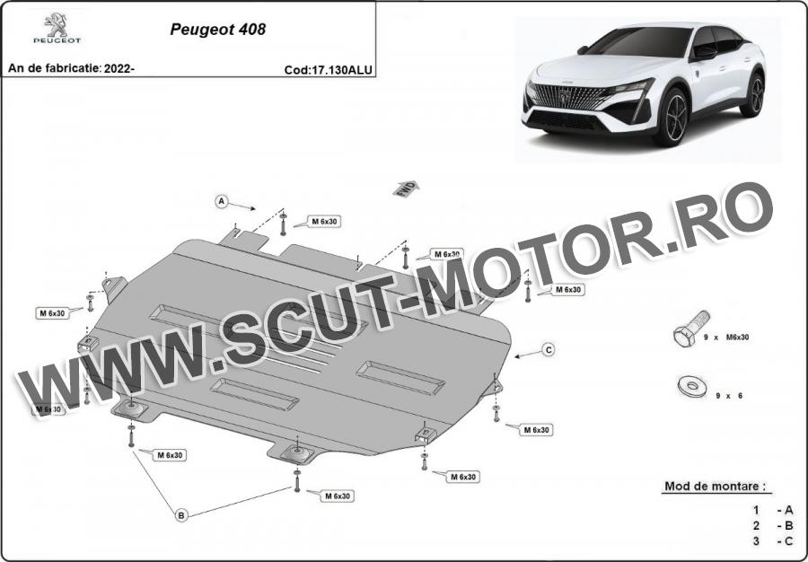Scutul este noua si se potriveste perfect pentru toate tipurile de motorizare Peugeot 408 fabricat între ani 2022 - 2026.