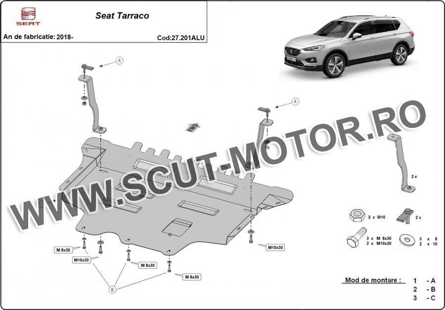 Scutul este noua si se potriveste perfect pentru toate tipurile de motorizare Seat Tarraco fabricat între ani 2018 - 2024. Scutul protejeazã: motor, cutie de viteză, radiator, bara față.