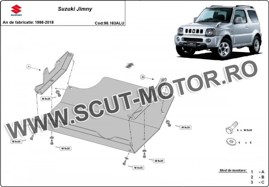 Scutul este noua si se potriveste perfect pentru toate tipurile de motorizare Suzuki Jimny fabricat între ani 1998 - 2018. Scutul protejeazã: motor, grup fata.