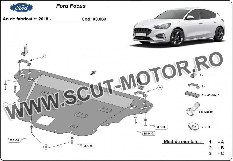 Scutul este noua si se potriveste perfect pentru toate tipurile de motorizare Ford Focus 4 fabricat între ani 2018 - 2026. Scutul protejeazã: motor, cutie de viteză, radiator, bara față.
