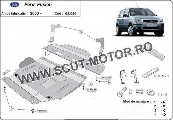 Scutul este noua si se potriveste perfect pentru tipurile de motorizare 1.4 , 1.6 - Ford Fusion fabricat între ani 2003 - 2012. Scutul protejeazã: motor, cutie de viteză, radiator, bara față.