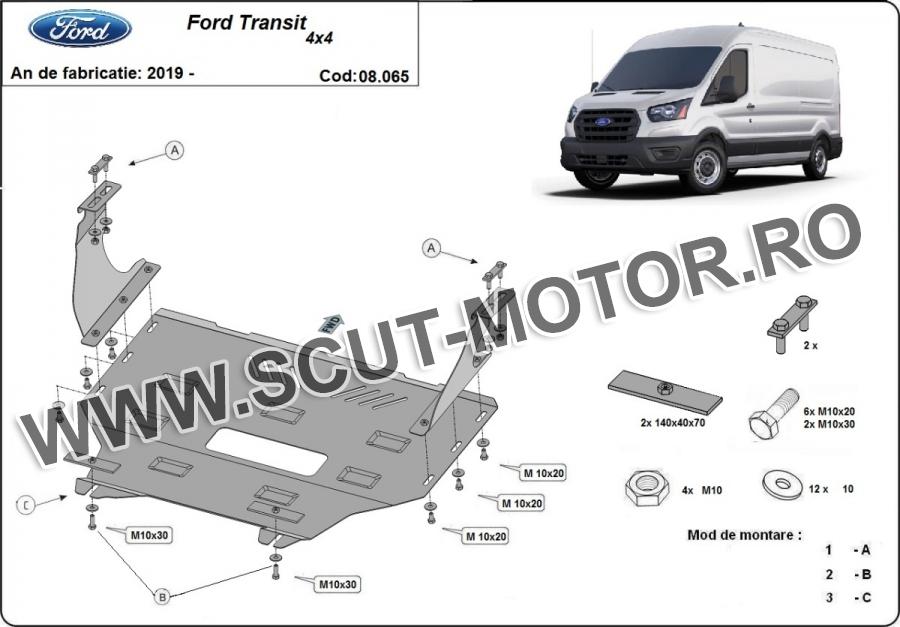 Scutul este noua si se potriveste perfect pentru toate tipurile de motorizare Ford Transit fabricat între ani 2013 - 2023. Scutul protejeazã: motor, cutie de viteză, radiator.