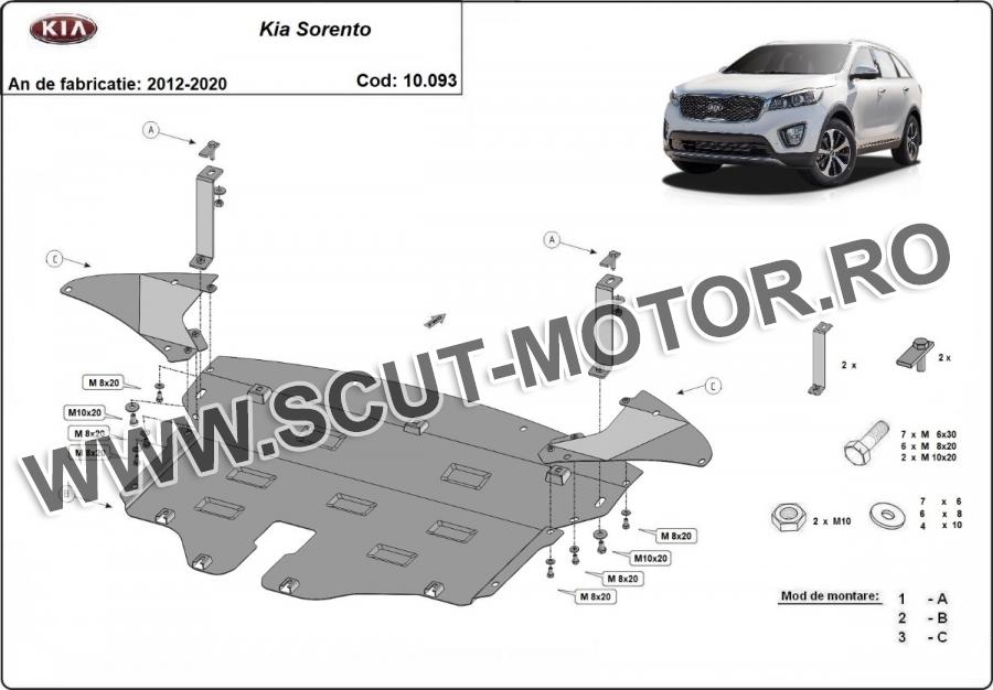 Scutul este noua si se potriveste perfect pentru toate tipurile de motorizare Kia Sorento fabricat între ani 2012 - 2020. Scutul protejeazã: motor, cutie de viteză, radiator, bara față.