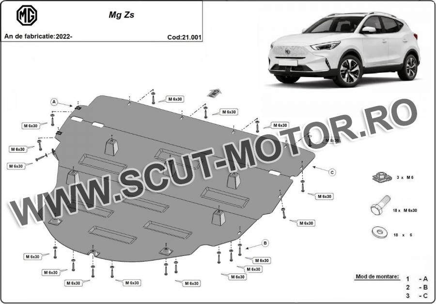 Scutul este noua si se potriveste perfect pentru toate tipurile de motorizare MG ZS fabricat între ani 2022 - 2026. Scutul protejeazã: motor, cutie de viteză, radiator.