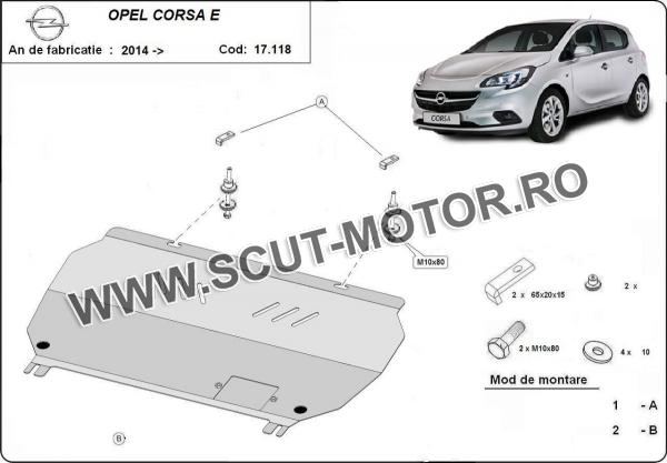 Scutul este noua si se potriveste perfect pentru toate tipurile de motorizare Opel Corsa E fabricat între ani 2014 - 2019. Scutul protejeazã: motor, cutie de viteză.