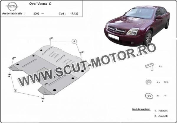Scutul este noua si se potriveste perfect pentru toate tipurile de motorizare Opel Vectra C fabricat între ani 2002 - 2008. Scutul protejeazã: motor, cutie de viteză, radiator.