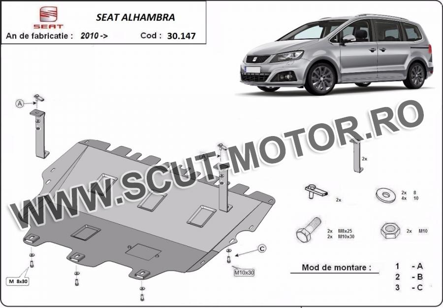 Scutul este noua si se potriveste perfect pentru toate tipurile de motorizare Seat Alhambra fabricat între ani 2010 - 2020. Scutul protejeazã: motor, cutie de viteză, radiator, bara față.
