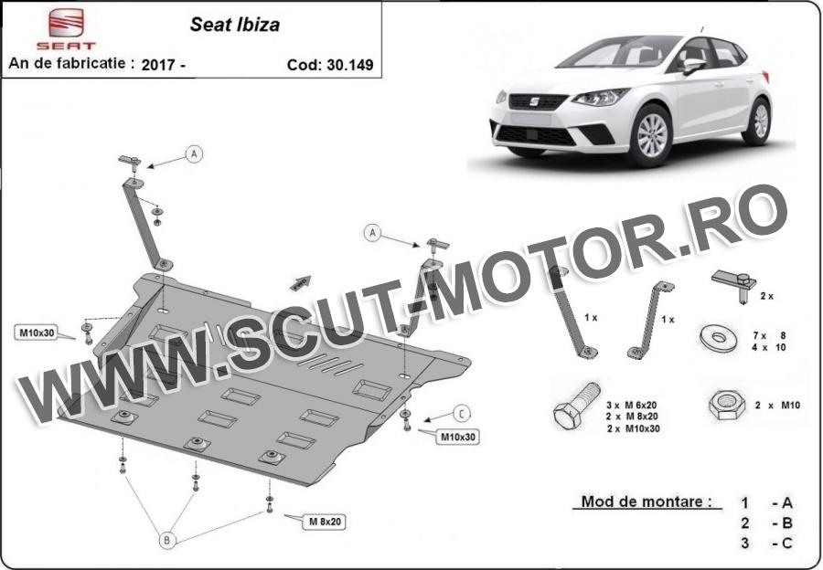 Scutul este noua si se potriveste perfect pentru tipurile de motorizare Toate - Seat Ibiza fabricat între ani 2017 - 2025. Scutul protejeazã: motor, cutie de viteză, radiator, bara față.