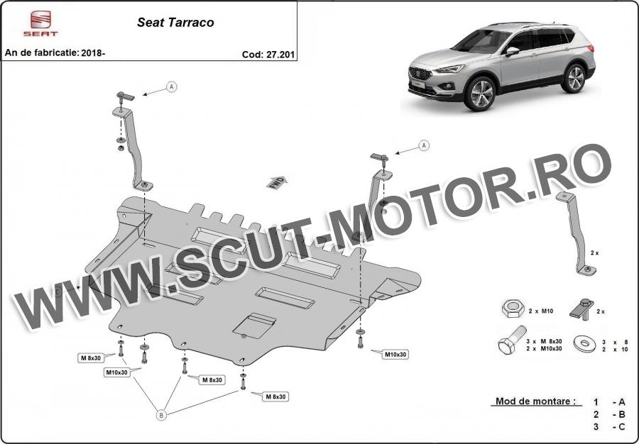Scutul este noua si se potriveste perfect pentru toate tipurile de motorizare Seat Tarraco fabricat între ani 2018 - 2026. Scutul protejeazã: motor, cutie de viteză, radiator.
