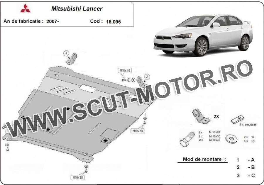 Scutul este noua si se potriveste perfect pentru toate tipurile de motorizare Mitsubishi Lancer fabricat între ani 2007 - 2017. Scutul protejeazã: motor, cutie de viteză.