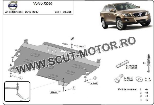 Scutul este noua si se potriveste perfect pentru toate tipurile de motorizare Volvo XC60 fabricat între ani 2010 - 2017. Scutul protejeazã: motor, cutie de viteză, radiator.