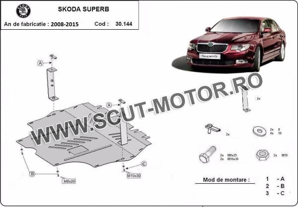 Scutul este noua si se potriveste perfect pentru tipurile de motorizare - Skoda Superb fabricat între ani 2008 - 2015. Scutul protejeazã: motor, cutie de viteză, radiator, bara față.