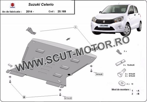 Scutul este noua si se potriveste perfect pentru toate tipurile de motorizare Suzuki Celerio fabricat între ani 2014 - 2025. Scutul protejeazã: motor, cutie de viteză.