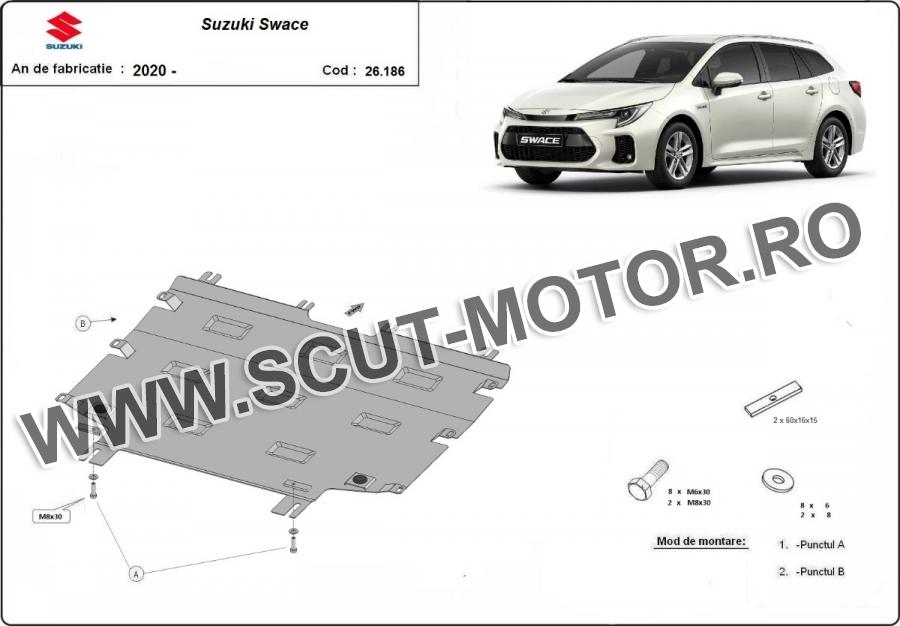 Scutul este noua si se potriveste perfect pentru toate tipurile de motorizare Suzuki Swace fabricat între ani 2020 - 2025. Scutul protejeazã: motor, cutie de viteză.