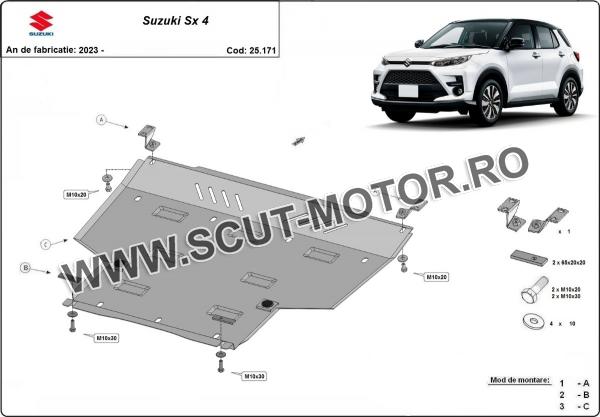 Scutul este noua si se potriveste perfect pentru toate tipurile de motorizare Suzuki SX 4 fabricat între ani 2023 - 2025. Scutul protejeazã: motor, cutie de viteză.