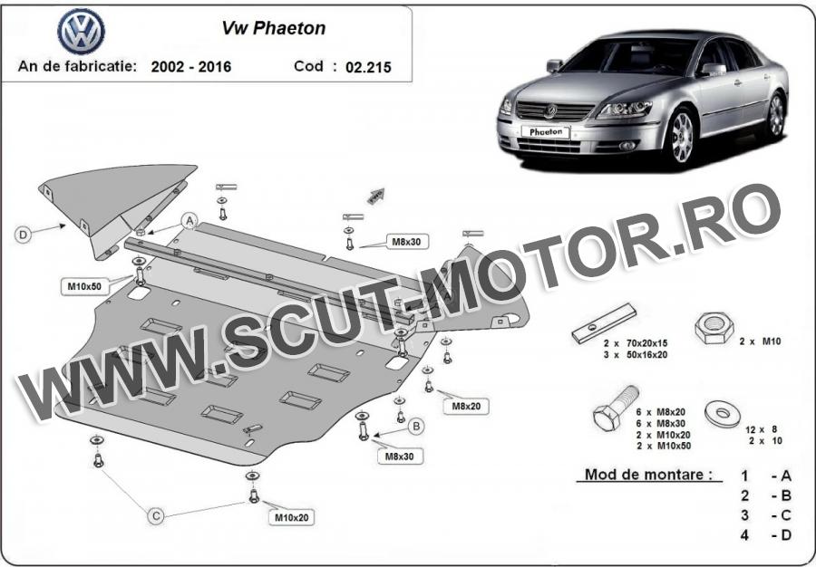 Scutul este noua si se potriveste perfect pentru toate tipurile de motorizare fabricat între ani 2002 - 2016. Scutul protejeazã: motor, cutie de viteză, radiator, bara față.