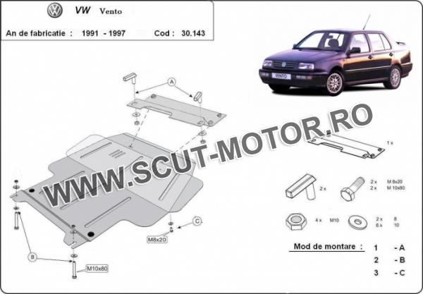 Scutul este noua si se potriveste perfect pentru tipurile de motorizare 1.4, 1.6, 1.9 D - Volkswagen Vento fabricat între ani 1991 - 1999. Scutul protejeazã: motor, cutie de viteză, radiator, bara față.