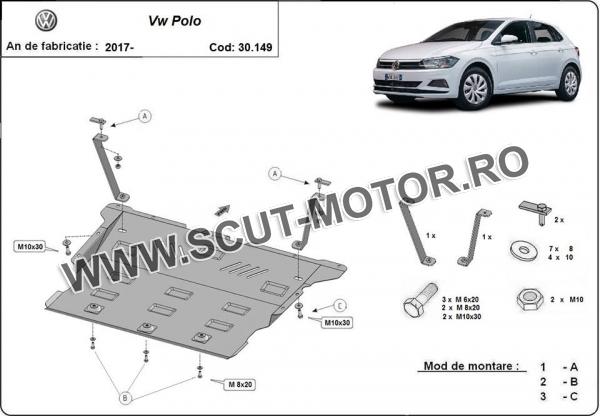 Scutul este noua si se potriveste perfect pentru toate tipurile de motorizare VW Polo fabricat între ani 2017 - 2025. Scutul protejeazã: motor, cutie de viteză, radiator, bara față.
