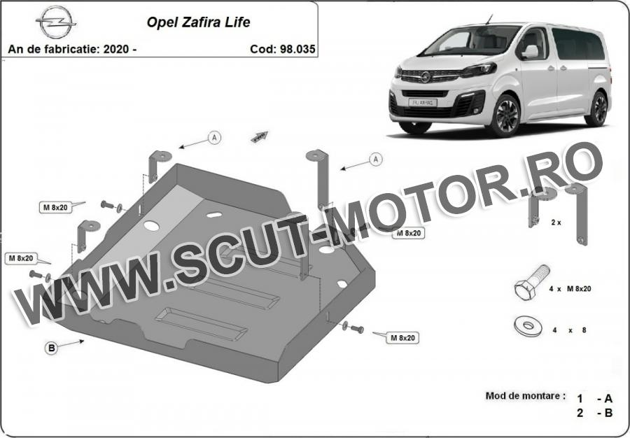 Scutul este noua si se potriveste perfect pentru toate tipurile de motorizare Opel Zafira Life fabricat între ani 2020 - 2026. Scutul protejeazã: rezervor AdBlue.