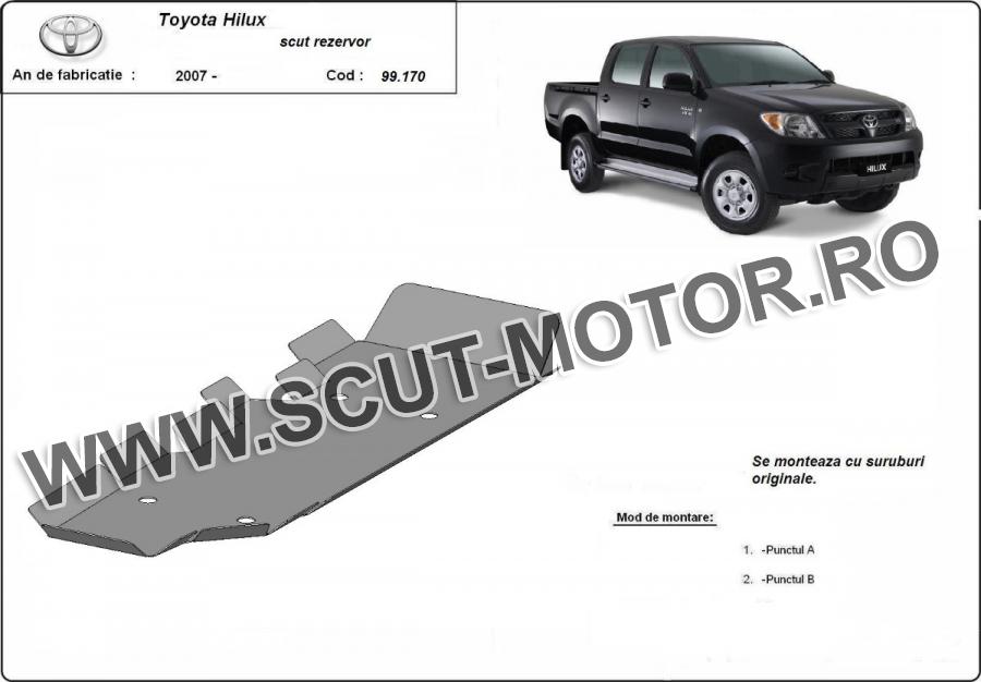 Scutul este noua si se potriveste perfect pentru toate tipurile de motorizare Toyota Hilux fabricat între ani 2004 - 2015. Scutul protejeazã: rezervor.